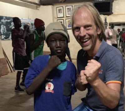 Peter Couvee (adviseur) is 56 jaar en trainer op The Jab. Werkzaam als behandelaar in de GGZ. Na een tropenopleiding werkte hij in Calcutta, India en Pakistan. Met grote liefde door Afrika gereisd en gewerkt in Somalie voor diverse NGO’s . Met Anneriek actief voor de bokschool van Shakira in Oeganda. Mooi project wat met bezielende kracht en inzet van Shakira, jongeren kansen biedt. Niet alleen ontwikkeling op sportief gebied maar ook op onderwijs, het beoefenen van een beroep maar ook als groep levenservaring op te doen die jongeren weerbaar maakt en zelfvertrouwen geeft.